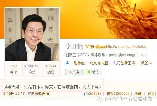 当然,最重要的还是内心的变化。病中他对人生命题进行了重新思考,此前太过用力的地方他在极力避免。现在,李开复的朋友圈和微博零星散落着,想发就发,没话可说就不发。不追求影响力,不说改变世界。“顺其自然一点”。