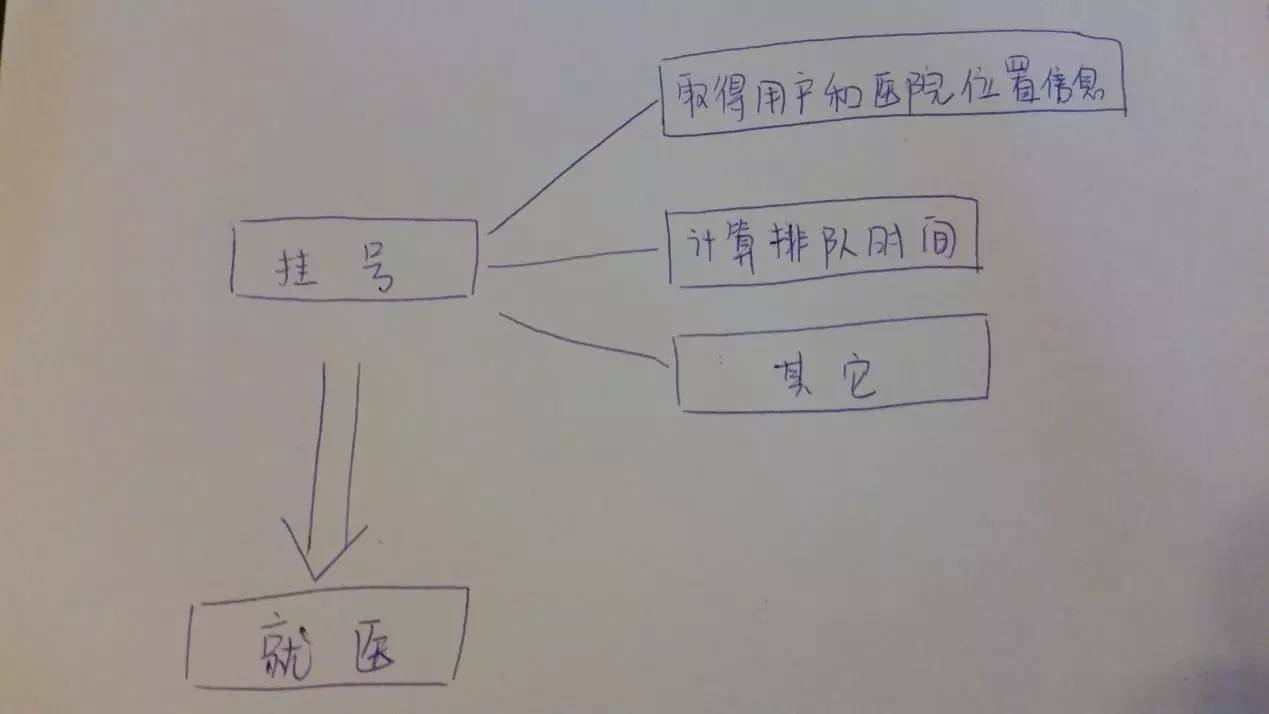 又一轮方向更为明确的头脑风暴过后,我们决定选择“挂号”作为切入点,以此为核心功能拓展我们的产品。选择“挂号”的原因是,小组成员在提到“看病之最不能忍之痛”时,每个人都提到了排队,挂号排队,看病排队,付费排队,拿药排队。到医院看病无异于一场心酸的排队史。