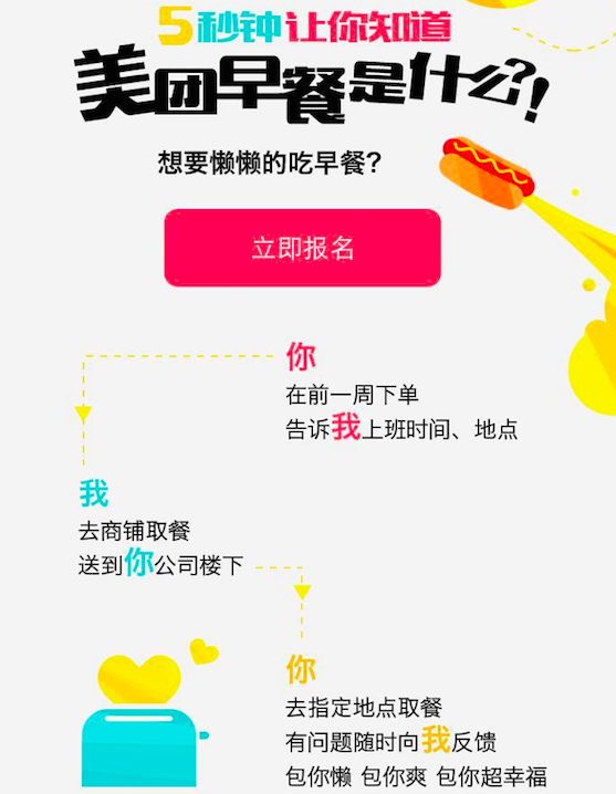 美团没有选择仅仅把早餐放在美团外卖里,而是放在一个很好的位置,甚至排在了外卖的前面,足以证明它的战略部署。早餐独立出来,是因为上班族的早餐基本都在办公室完成。单点做早餐,可以把早餐的质量提升,而早餐的成本本身不是很高,所以完全可以不用给早餐提供方补贴就可以找到不错的提供商。美团要一步到位,企业用户现在的痛点不是没钱,是吃不到放心的早饭,而且时间有限,企业员工一旦价格品质认可,确实比较稳定。