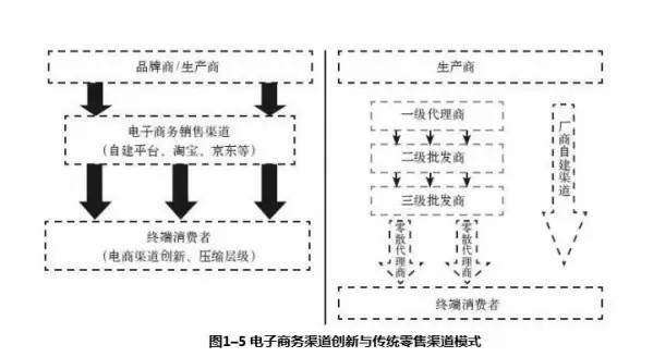 线上和线下的全渠道融合本质是互联网平台对营销和渠道环节的重构。主要来自三个路径:电子商务提升渠道效率,社交网络助力精准营销,移动互联放大“大数据”的客户价值。