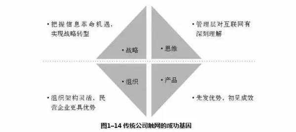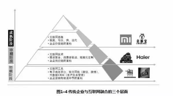 1.传统企业与互联网的融合由浅至深,经历三个层面。