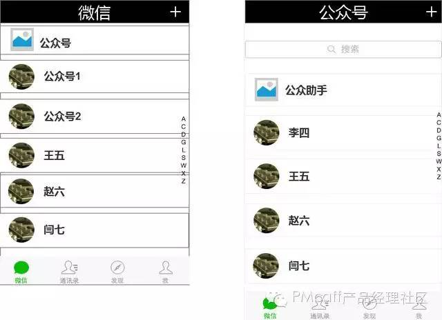 1. 取消掉需要点击“公共号”按钮才能看到公共号的子分类的设计。当关注之后,直接在“信息“栏目中可以看到你最新关注的公众号所有信息,并且每个公众号允许设置是否可以置顶等选项;