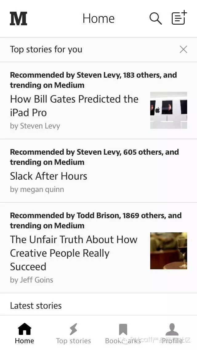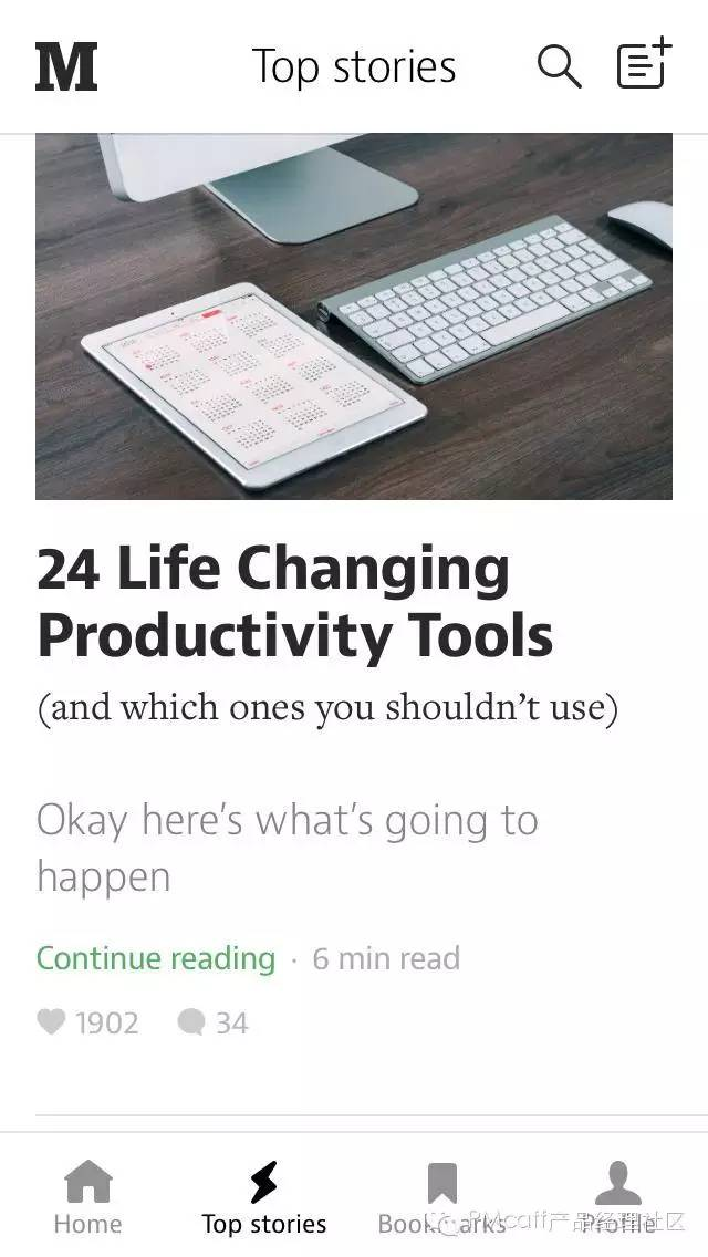 这里来一个分割线是有原因的,因为对于文章类(post)的设计,下面的这款是我比较推崇的一款App,设计风格的简约,让人忽略感官上的关注度,而用心投入到内容的搭建上,我想,这也是公众号分享的核心所在。我们先来看看Medium的文案设计:
