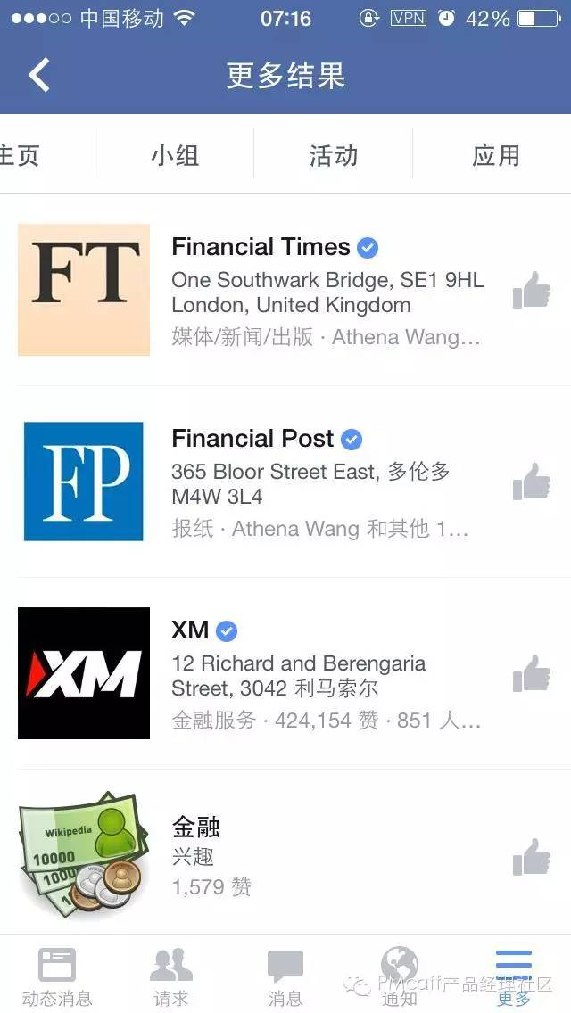 FB的这个布局结构不需要我介绍太多了吧!因为大家应该都是非常熟悉的,加上十几年前很火的人人,大家也可以通过它了解到FB有的常规功能。关于公共主页的功能,在更多主页中就可以搜索到你需要关注的公共主页(也就类似于微信的公共号)。上面的有图,就是搜索公共主页导航,可以根据自己的喜好去关注,这一点与微信大同小异。