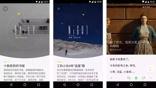 Light 是网易旗下的阅读应用,它以早报、晚报的形式为用户推荐互联网中的精品内容,通过内容和设计,Light 想传达给用户一种明亮并温暖治愈的感觉。