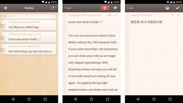 锤子便签设计的出发点,是做一个「简单好用的便签工具」。简单、干净,纸张铺在一张木头桌子上的感觉,是锤子便签想传达给用户的基调。
