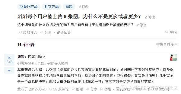 在产品网站、相关论坛或是群组讨论中,我们总能见到类似这样的问题:为什么某产品一次最多只能发9张图?为什么某处的提示文字是A而不是B等等……这些回答充满着各种揣摩与思考,人们通常会从人文到科技,心理到社会等各种角度对实现者的思想加以解读,但最后直到『真身』出面解释,大家才发现这些琐碎提问背后真正的逻辑往往出乎意料的简单并且具有一定的共性。
