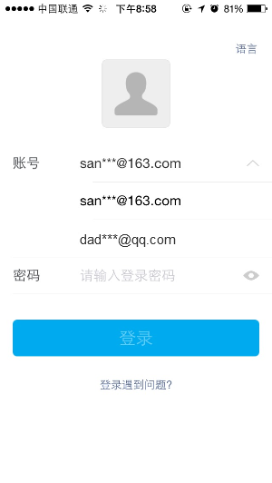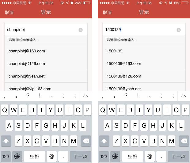 2、输入账号时推荐邮箱后缀,减少输入