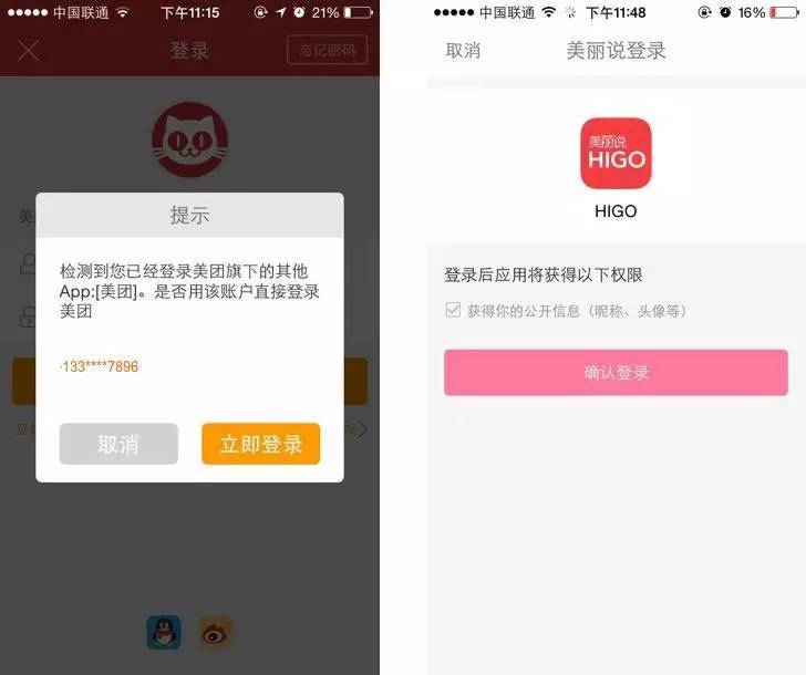 当你有2个及以上的应用提供给用户,并且安装量比较大时,可考虑采用共享登录。共享登录,指当你的某个应用在用户手机上处于登录状态时,你的在用户手机上的其它应用只需要通过简单授权(也可省略授权),就能共享已登录应用的登录状态,减少输入。其原理同第三方登录。