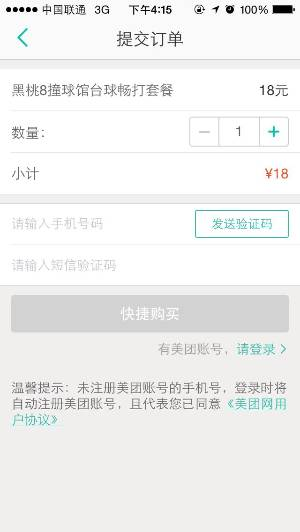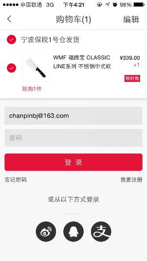 操作页植入登录,一般采用手机号+验证码的方式登录。这么多电商网站,你常常没有注册账号或忘记自己的登录账号,这时临时帮你生成账号是比较靠谱的方式,而手机号+验证码登录是比较好的方案。