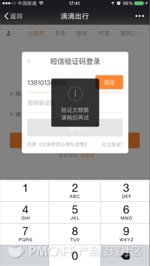 比如这个例子中,频繁验证,就验证码键盘,过了一定时间才可以点击,之前灰色显示