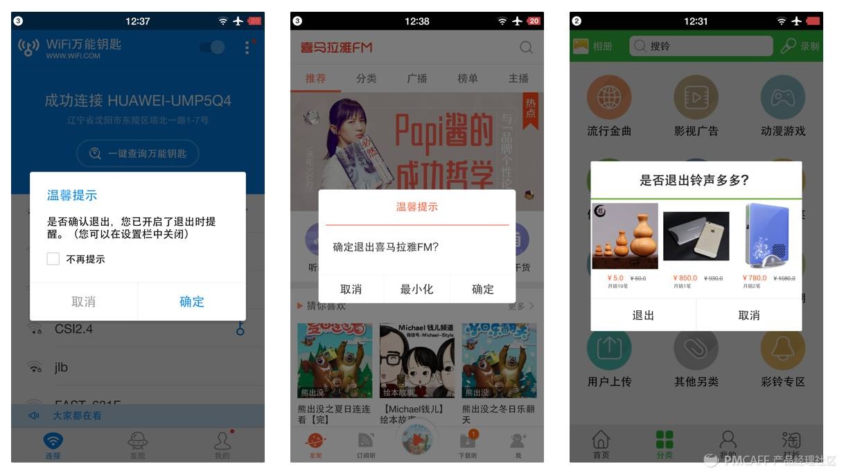 2,再分析一下移动APP中常见的出现对话框的时机:
