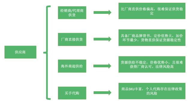 经销商/代理商供货模式:由海外品牌经销或代理分拨货物给跨境电商,比厂商直供价格偏高,很难保证供货稳定。