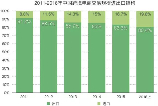 2、近年来国内对海外商品需求不断增长,跨境电商进口业务在进出口贸易中占比仍在提升。2016年上半年,进口跨境电商交易规模已经达到了5125亿元。