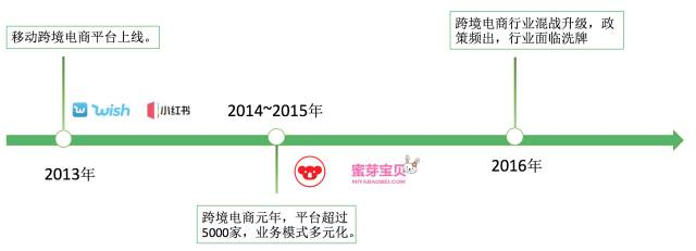 2014~2015年,跨境电商元年,平台超过5000家,业务模式多元化。代表产品:网易考拉,唯品会、蜜芽、小红书