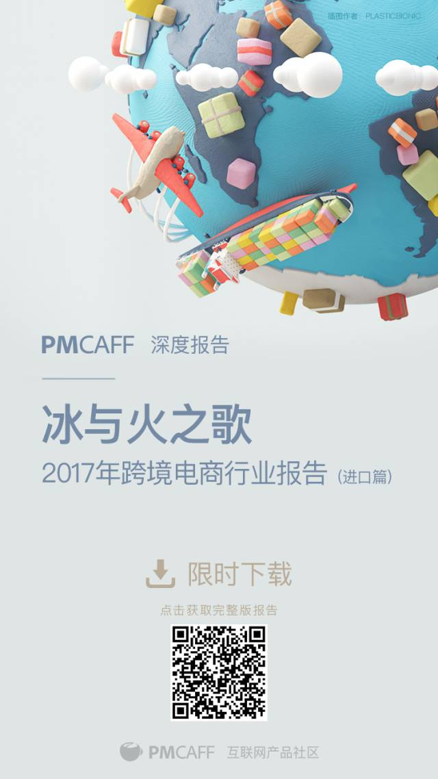 特别鸣谢:王圆航、周健、温晗、王敬轩、谢成、范玉林、Ace、高长宽,对PMCAFF深度报告《冰与火之歌——2017年进口跨境电商行业报告(进口篇)》的支持。本文由树浔、鹿城编辑。
