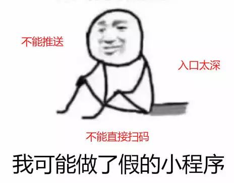 应用分发,App预装,刷榜,搜索的竞价排名,诸如此类的流量生意在目前的小程序上都无法施展手脚,这样的做法比较容易理解,至今微信在朋友圈信息流、订阅号的排序优化都没有做过大的改善,可能也是为了保全用户体验吧。