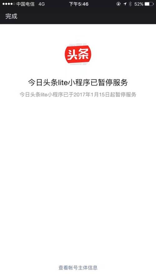 同样是最早上线的小程序之一今日头条lite,1月15日晚有网友发现今日头条lite小程序版本已经暂停,截止发稿前,小编发现该版本的今日头条已经恢复使用,其中暂停的具体原因官方尚未披露。即使是这样,也有用户反馈失去核心算法优势的「阉割版」今日头条只有“推荐”和“视频”两个选项,也不能搜索,体验实在是不好,故而弃之不用。