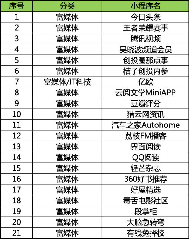 要说搞事情,跑得最快的还是媒体人,在小程序发布当日,博卡公布了一份榜单,当天发布的Top100小程序中,富媒体类别的就占了21家。