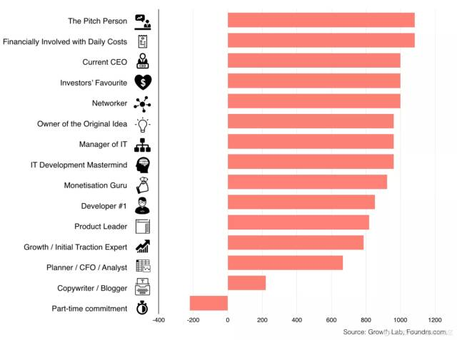 创始人股权本质上是根据每个创始人对公司未来的价值贡献而进行分配的。注意,是“对公司未来的价值贡献”。而不是今天谁出的钱多,谁就一定是老大。创始人可以一起参考下图里面的不同任务,坐下来一起想一想,量化一下。苹果最开始的股权比例是乔布斯和沃兹尼亚克各45%,韦恩10%;谷歌,佩吉和布林一人一半;Facebook,扎克伯格65%,萨维林30%,莫斯科维茨5%。