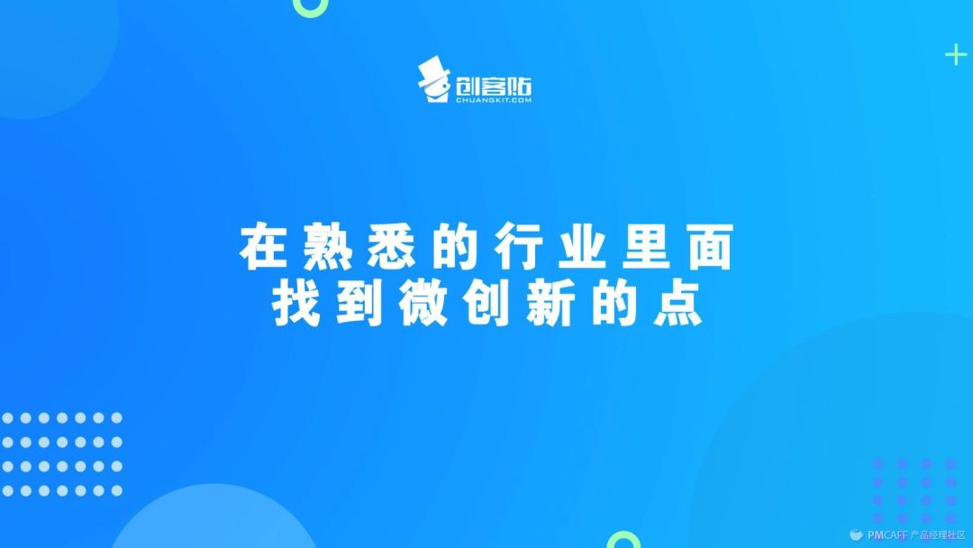 大家可能都是来自不同行业和领域的产品经理,我认为在自己熟悉的行业里面能找到微创新的点是对于首次创业非常重要的事,对于行业的理解和洞察力往往能发掘不轻易被人看到的痛点。