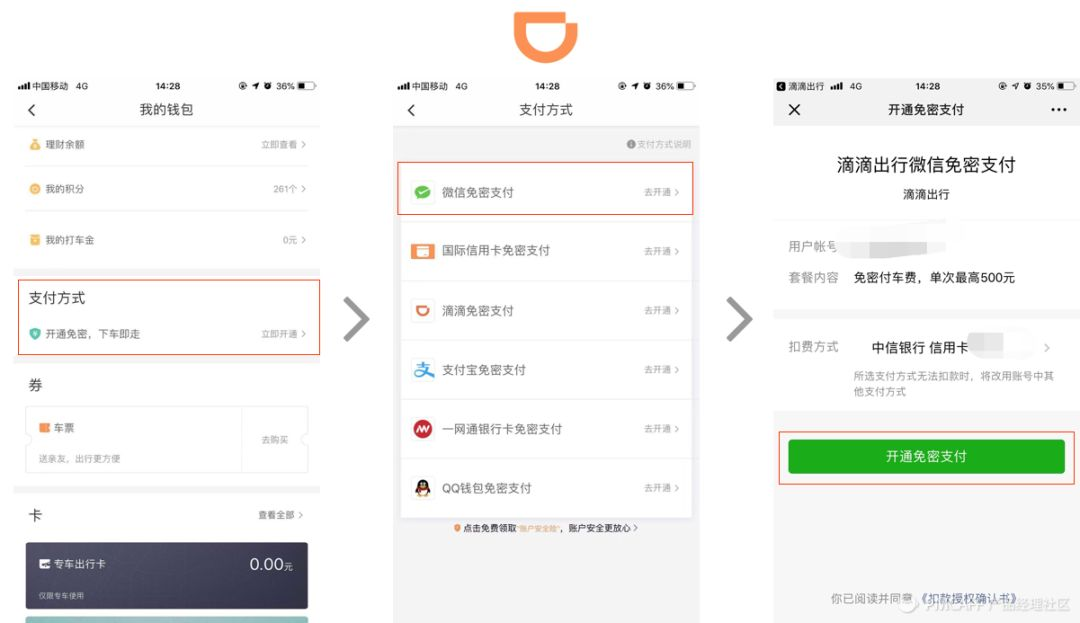 开通免密支付,每次行程结束后自动扣除车费,减少了用户的“操作成本”。