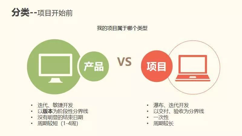 第一个是产品型,第二个是项目型,大家可以问一下自己属于哪个类型的项目。