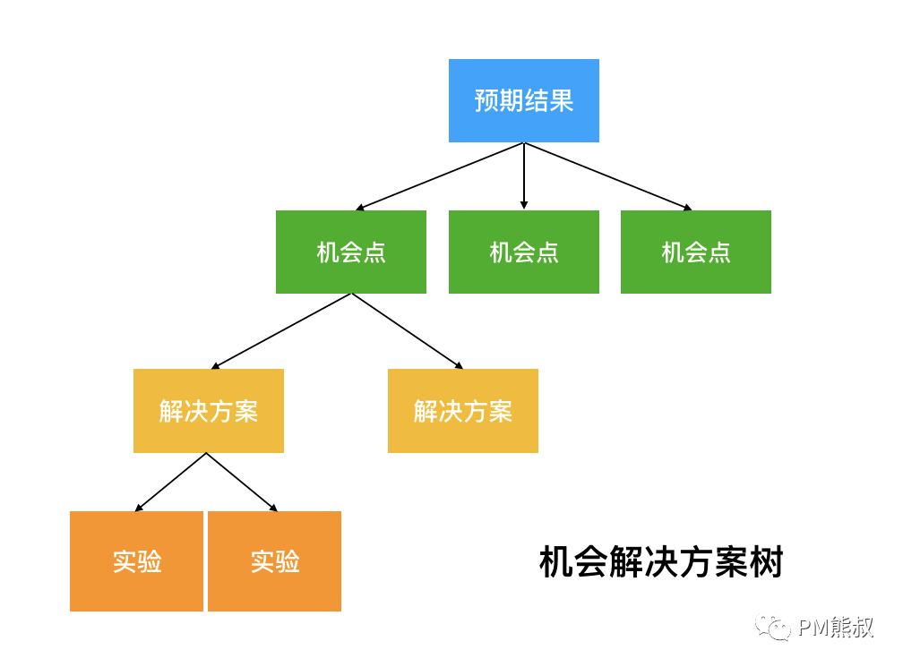 因此,我提出了“机会解决方案树”这个视觉化思考工具:通过可视化的树状图,把预期目标的拆分成不同的机会点,再把机会点拆分成多个解决方案,在通过实验验证解决方案的可行性。