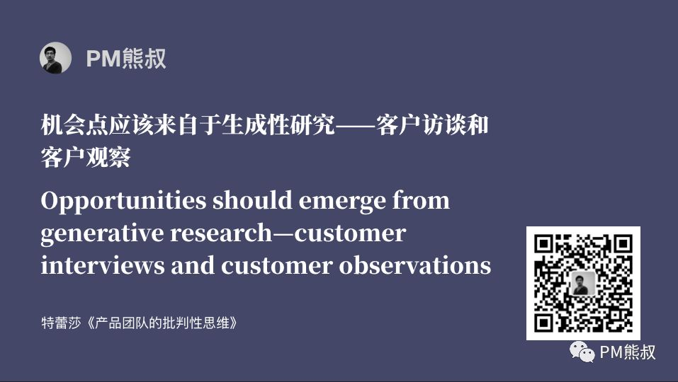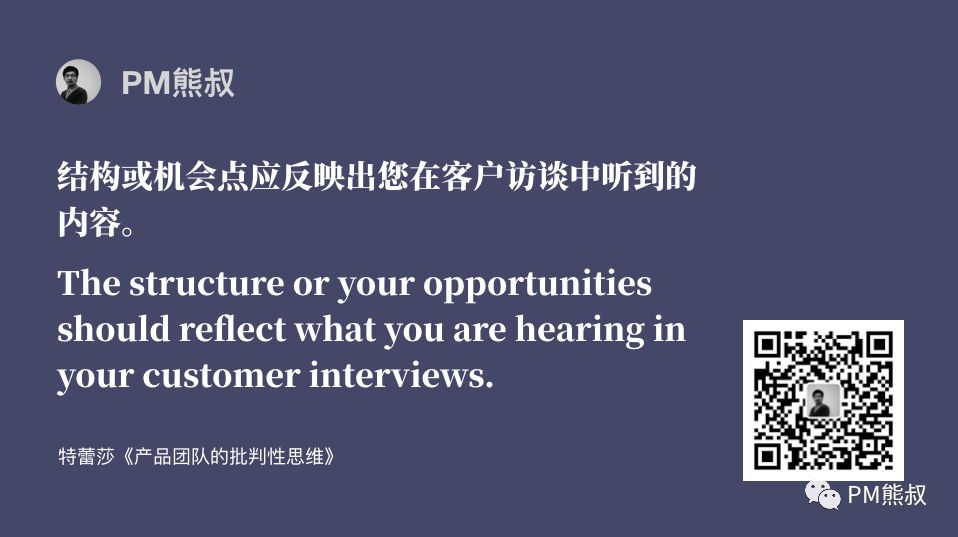 为了确保我们始终以用户为中心,我喜欢将机会点的定义限制为客户可能会说的话。这些机会点应该来自生成性研究——客户访谈和客户观察 。