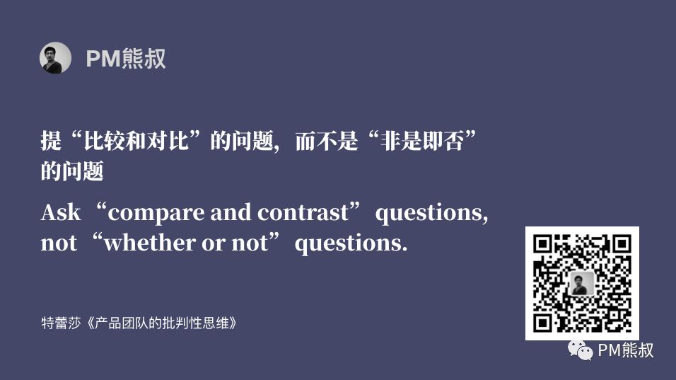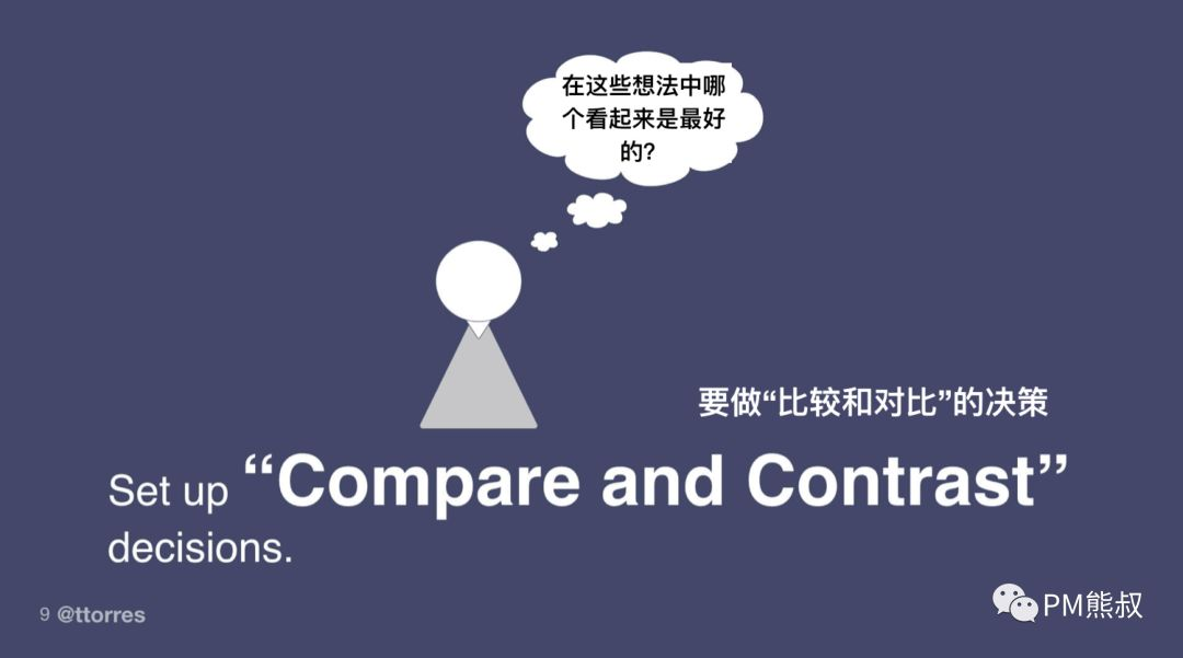 我们很难非是即否地回答,一个决策是好还是不好。因为“好”不是绝对的,而是相对的。我们应该问一个“比较和对比”的问题:“这些想法中哪一个看起来最好?“这更容易回答。
