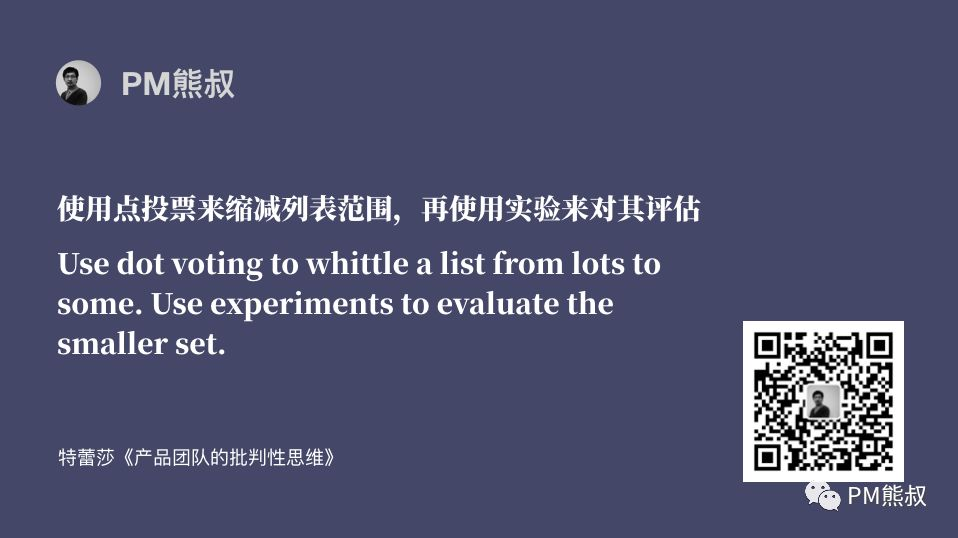 当我们有很多想法时,我推荐你先用点投票法缩减列表,再使用实验来评估这个集合。
