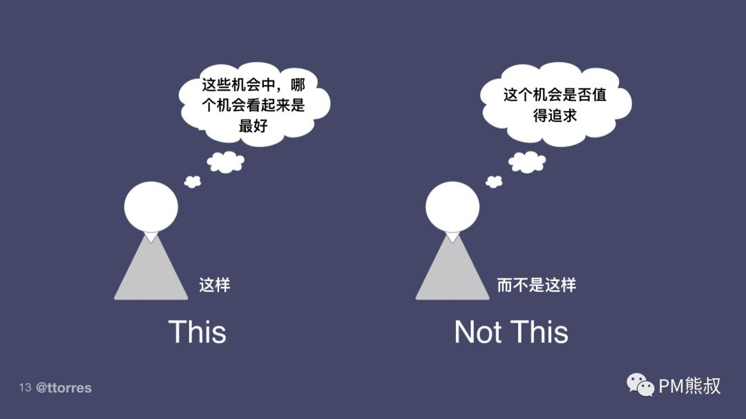 就像我们通过考虑更多的想法避免“非是即否”的问题一样,机会点也是如此。我们不要问“这个机会值得追求吗?”我们要问“这些机会中哪一个看起来最好?”