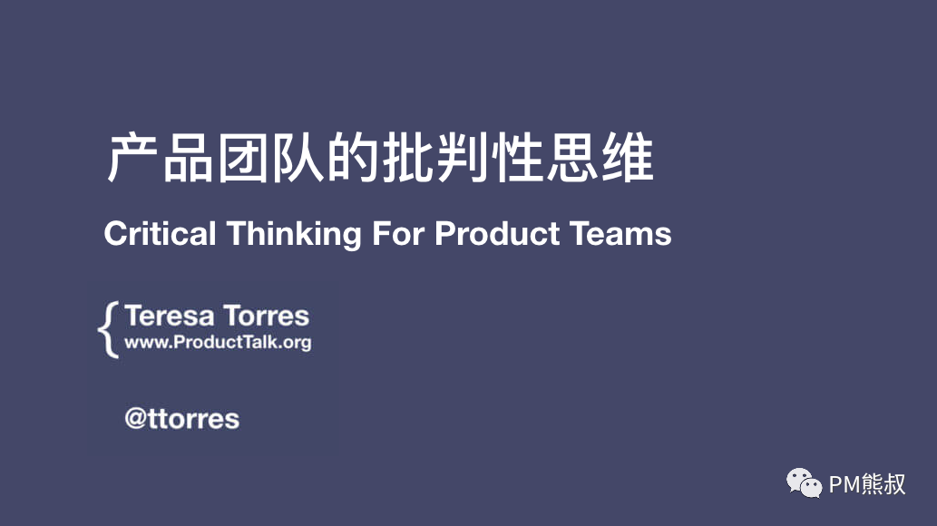 今天这篇文章是一篇译文,作者特蕾莎(Teresa)是一名富有经验的产品发现教练,这篇文章源自于她在2017年伦敦产品思维大会的演讲——产品团队的批判性思维。