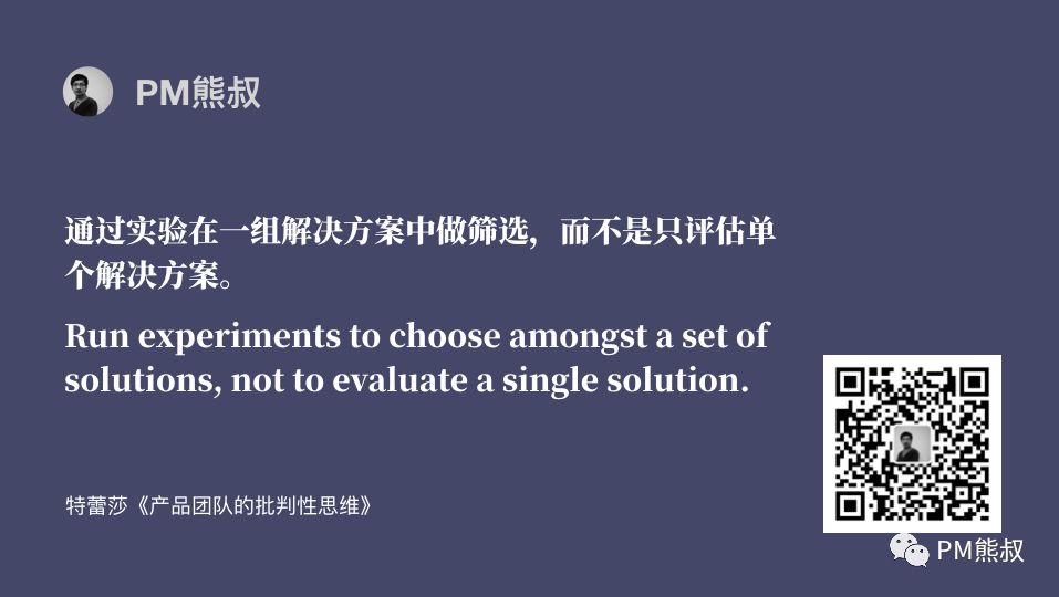 请用做实验的方式在一组解决方案中选择,而不是评估单个解决方案。