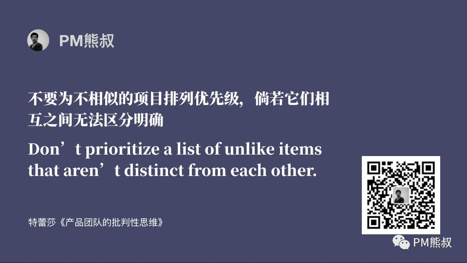 这不仅失去了头脑风暴的创造性,而且最终也导致我们面对一堆方案不知所措。另外,我们也很难给不一样的事物排定优先顺序。