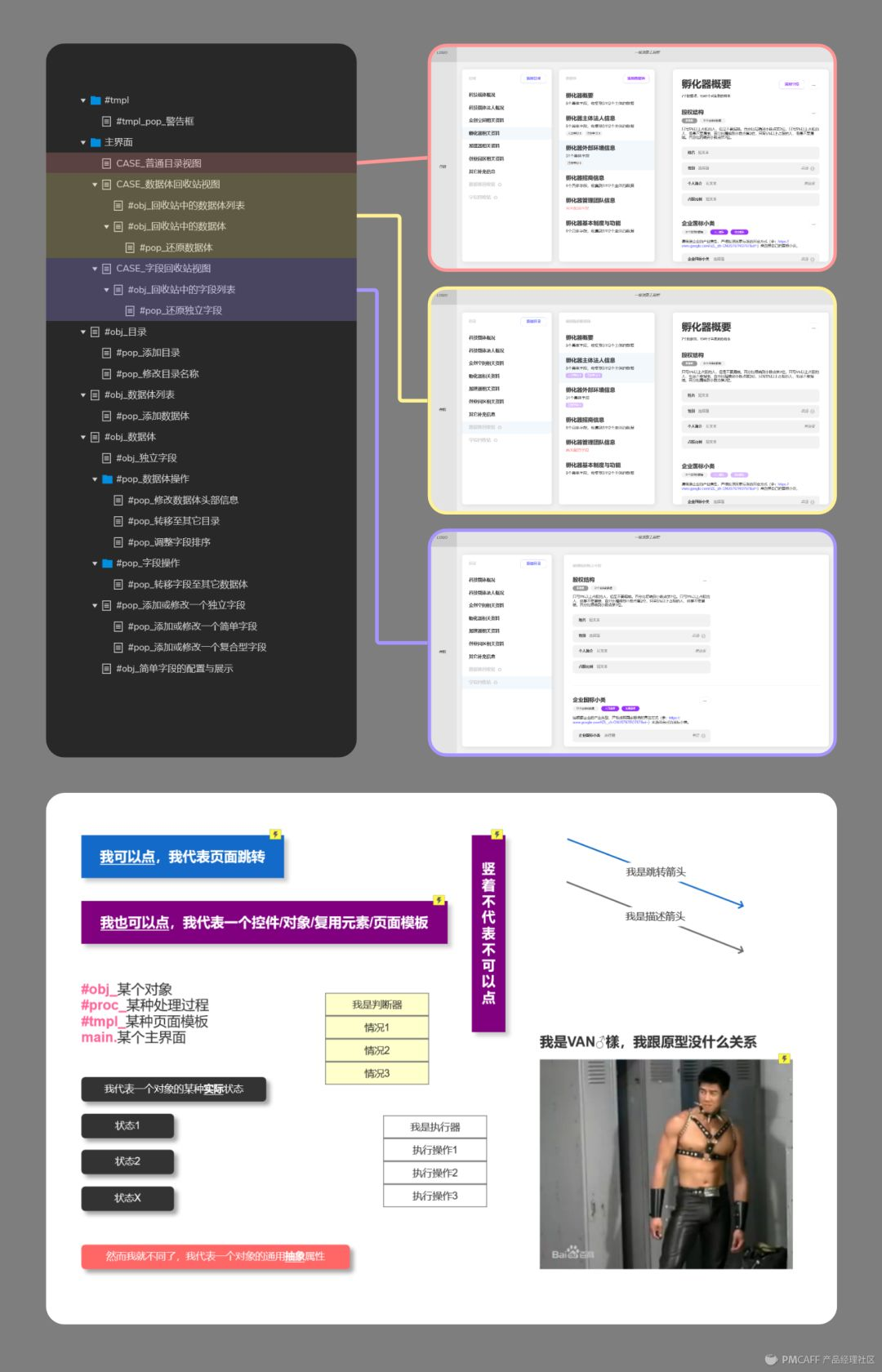 跟后端程序员开会的时候,我大部分时间只跟他们讲后端逻辑文档,至于原型长什么样子,其实除了接口方面,后端程序员根本不关心。如果你不能把后端逻辑说清楚,而是一味地说“这个按钮点了之后就去到哪一页”,证明你还是在用外行人的眼光来分解一个产品的构成。