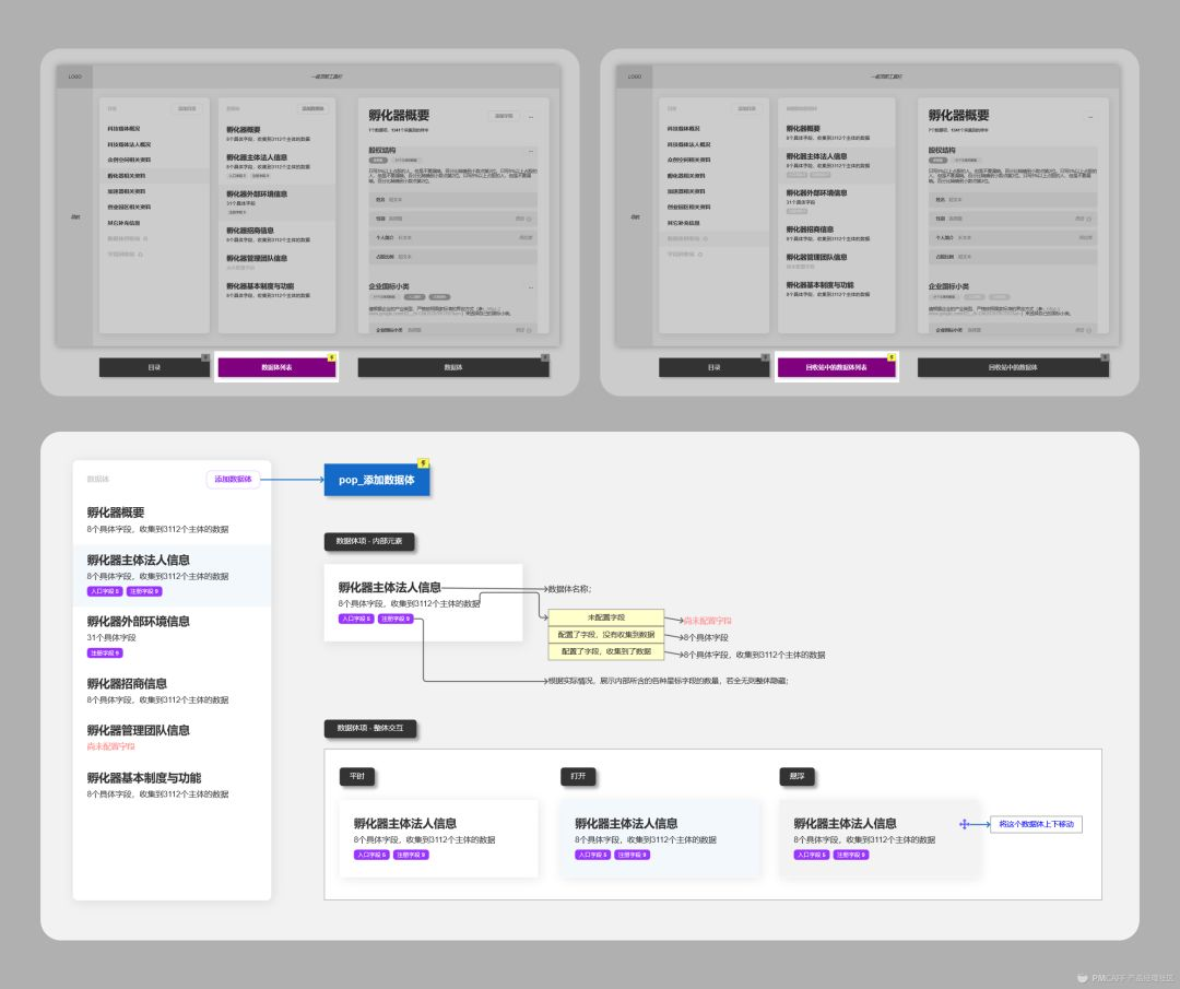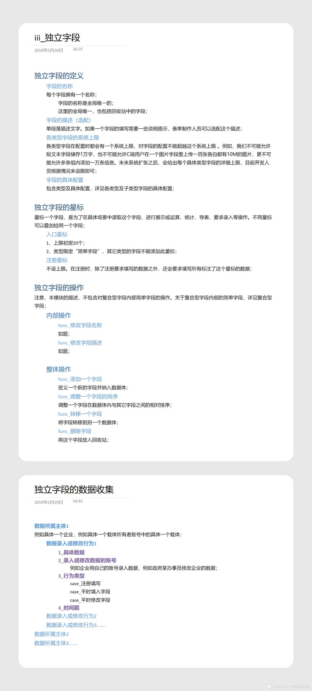 在前面两个环节,你看到了数据体,也看到了数据体下面的独立字段。这两个环节不是平级的,但是它俩都具备添加或修改字段的功能。为什么会这样?因为数据体本身肯定可以添加字段,而数据体下面的具体字段,你得提供再次修改这些字段的功能啊,你不能让运营的人每次录入都签字无悔啊。