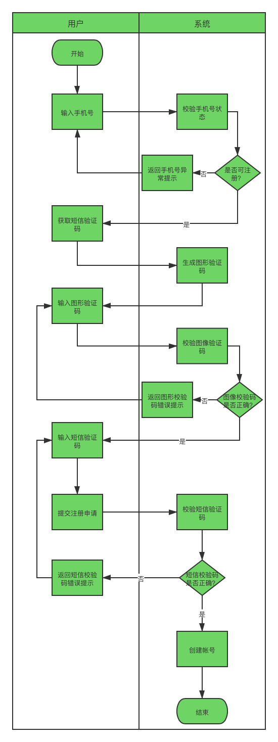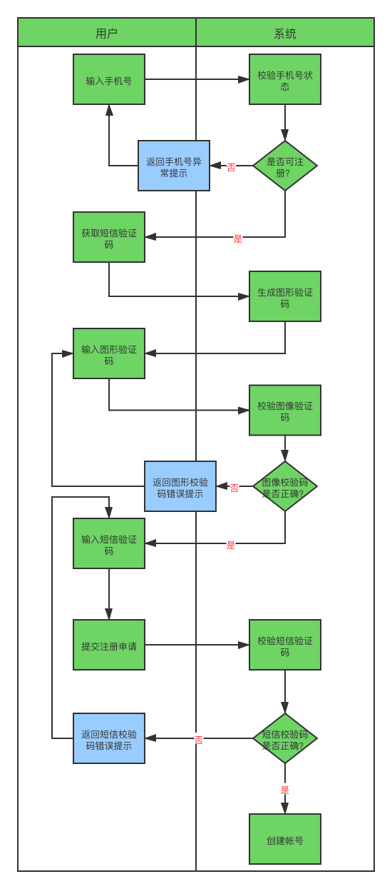 帐号注册业务中,输入手机号后,可能会检测到手机号已存在;校验图形验证 码和短信验证码时,可能会因为验证码过期或错误,导致验证失败。