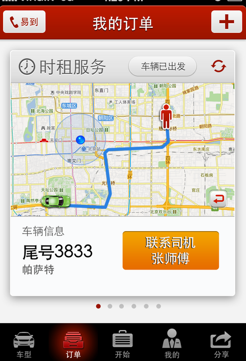 我们也有这种生活体验,在易到产品体系中通过这种线上展示改进了这种体验。当乘客预订了易到的用车服务以后,在上车前的一段时间里,可以关注 APP 端,随时看到车辆的位置信息以及距离自己的远近情况。有了这个信息,乘客心里会淡定很多,也不再需要和司机频繁的电话沟通了。