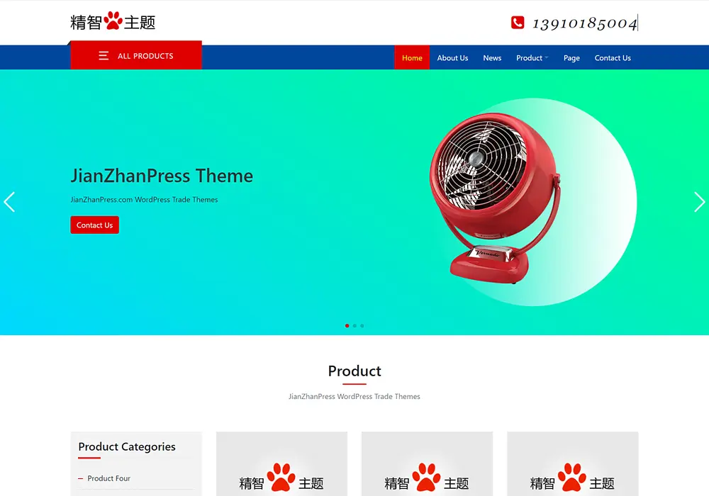 简洁实用的经典蓝色、红色搭配的wordpress外贸网站主题模板,外贸自建站主题。