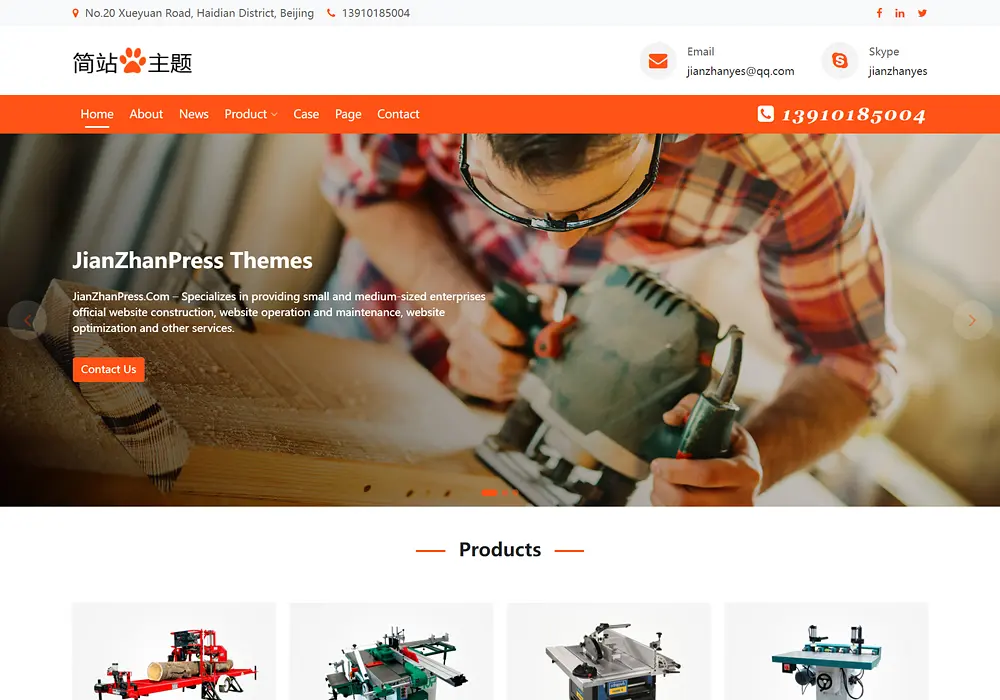 简约大气的wordpress外贸主题,为木工机械设备行业定制的wordpresss外贸模板。