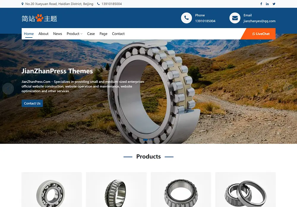 简洁又不失大气的wordpress外贸主题,适用于卖轴承出口的外贸公司官网使用。
