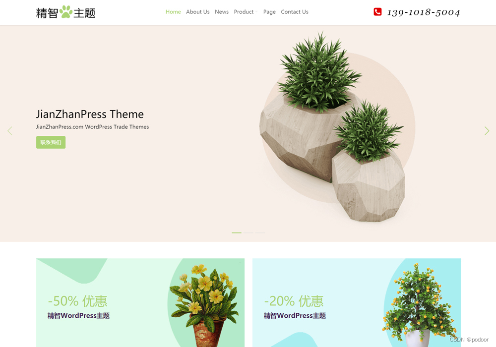 十分简的绿色绿植花卉wordpress外贸主题,适合做花卉生意的老板建网站使用。