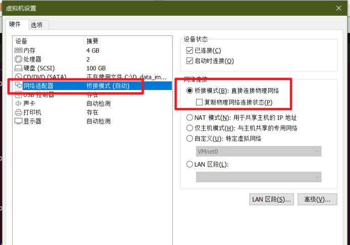 为什么选桥接,是因为,可以将虚拟机和主机在同一局域网内。
