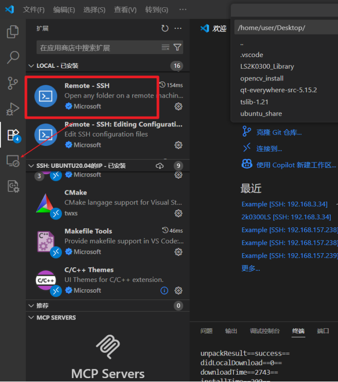 方法2:在win10/11上下载vscode,使用ssh插件,连接远程的ubuntu(需要ssh)