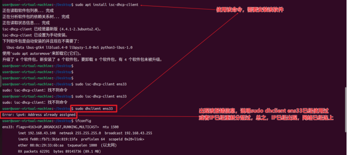 Ubuntu终端使用ifconfig,就可显示ens33的ip