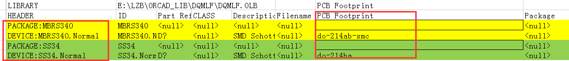 特别值得注意,有些是会自动生成封装,也就是PACKAGE下面PCB Footsprint是有封装名的,然后DEVICE下面是<Null>, 其实这个封装有可能是错误的,所以要手动去更正,本人是吃过亏的,请留意这一点