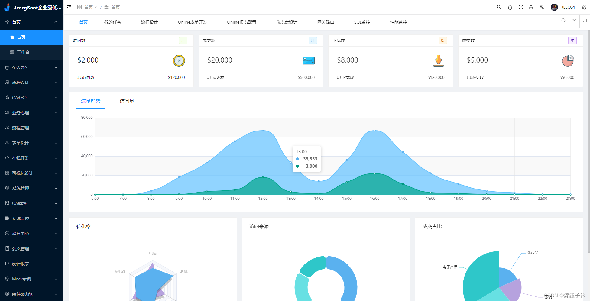 Vue3演示地址: JeecgBoot 企业级低代码平台
