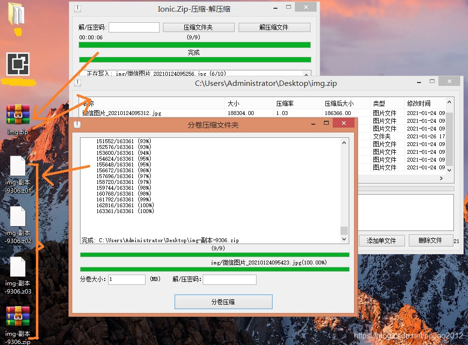 1、解压/压缩 显示加密进度及总进度。