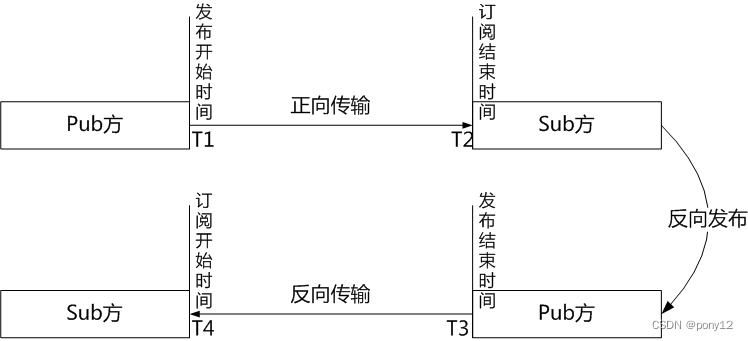 3)对于普通机器而言,很难做到时钟一致的理想情况,可以通过pub-sub-repub-resub的方式,类似于RTT(round_trip time)的方式来测算传输时延;
